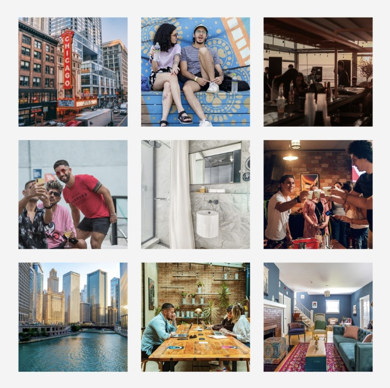 Visual Cohesion: Organized imagery to create a consistent grid aesthetic, balancing colors, locations, and activity types.